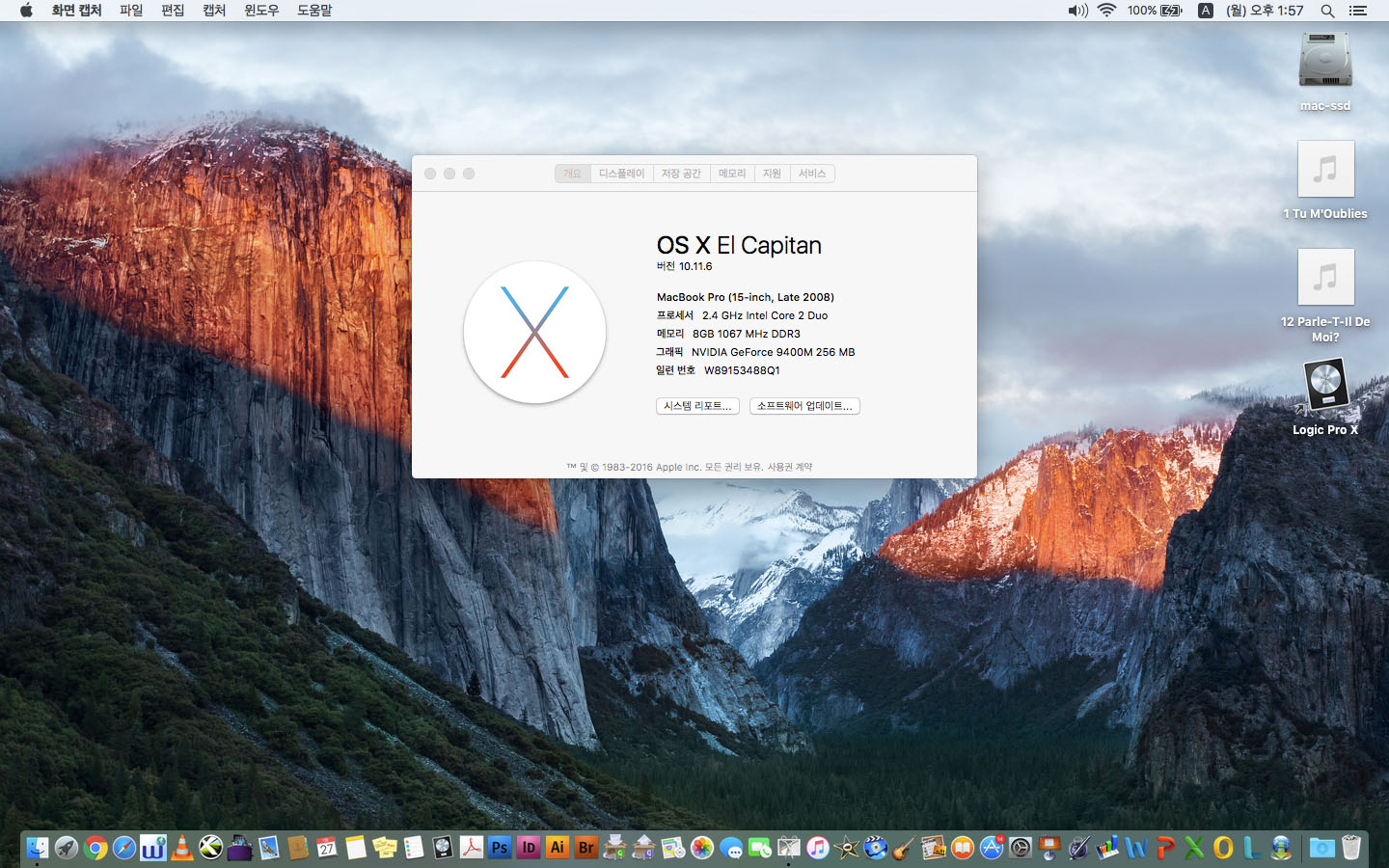 애플- 특A급 유니바디 2008년 맥북프로 15인치-ssd 장착 8기가 램